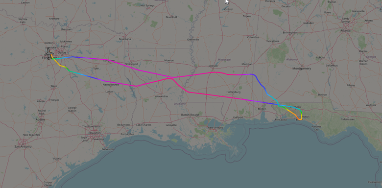 (Photo: ADSB Exchange shows the June 16, 2024, flights of Daystar’s jet which flew to Destin to pick up Joni and her new husband Doug Weiss after they spent over a week in Florida celebrating their first anniversary.)