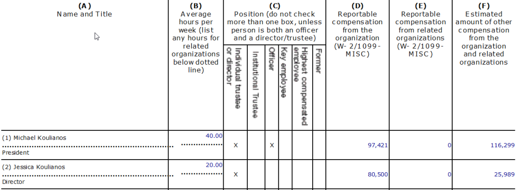 Housing allowance information is disclosed in two places in the 990s, the first location is column F in the Compensation of Officers, Directors, Trustees, Key Employees, Highest Compensated Employees, and Independent Contractors section.