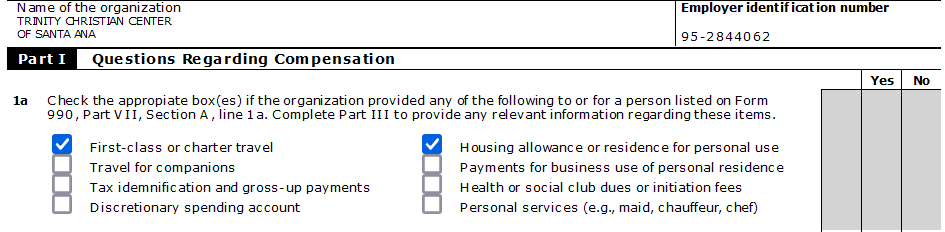 (Screenshot: While Trinity Christian Center of Santa Ana, better known as TBN, does not own any known beach houses, this photo is included to show how non-profits disclose housing allowances and parsonages.)