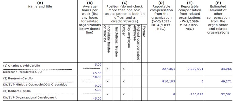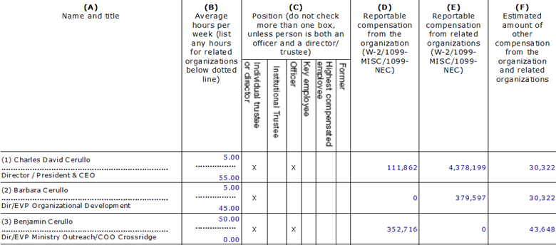 David Cerullo’s wife Barbara and son Benjamin also appear on the MinistryWatch list by serving as executives at The Inspirational Network.