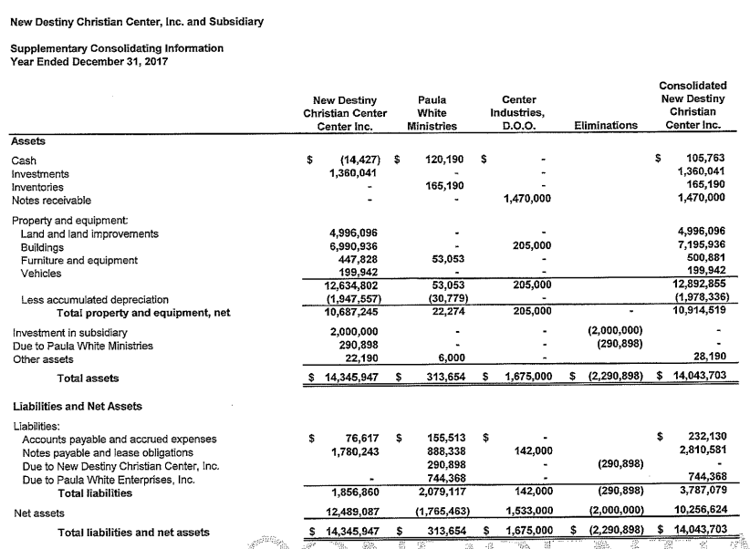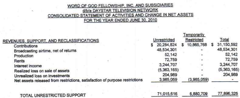 The unsealed Word of God Fellowship documents include consolidated financial statements. By June 2010, Word of God Fellowship’s total assets reached $227,399,039.