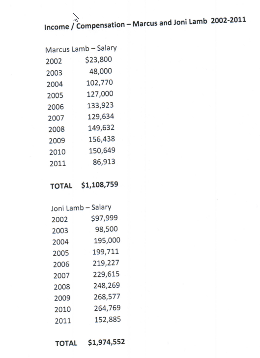 Numerous questions arise when examining financial records. While it looks like Joni Lamb was paid significantly more than the late Marcus Lamb because the housing allowance was reported separately, if Marcus received the housing allowance, he was paid more than Joni.