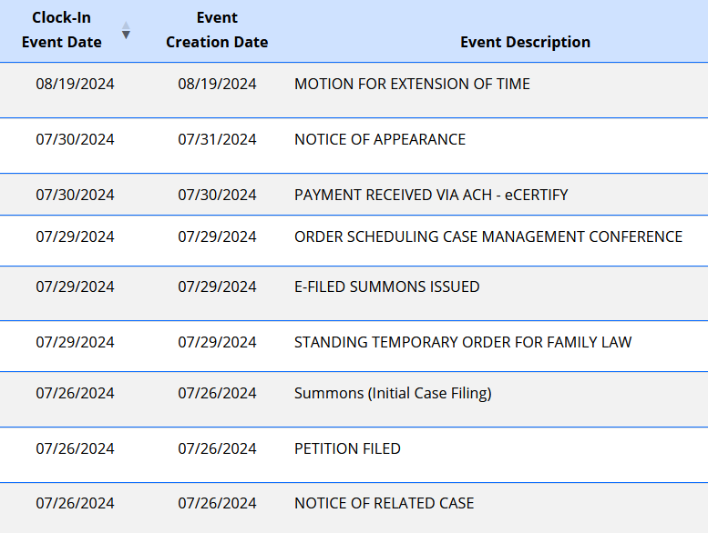In August 2024, Benny requested an extension for more time to respond. The documents in the divorce case are no longer available to the public.