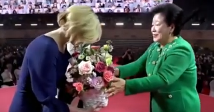 (Screenshot: By collaborating with American politicians and religious leaders, the Unification Church has gained support in the United States. Paula White bows to Mrs. Moon in South Korea.)