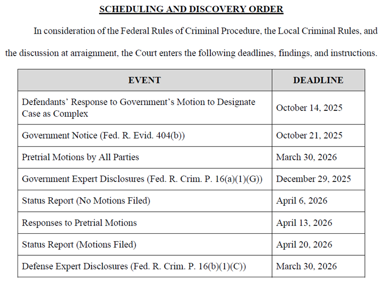 (Screenshot: The Scheduling and Discovery Order is available from PACER, the federal government court website. PACER is an acronym for Public Access to Court Electronic Records.)