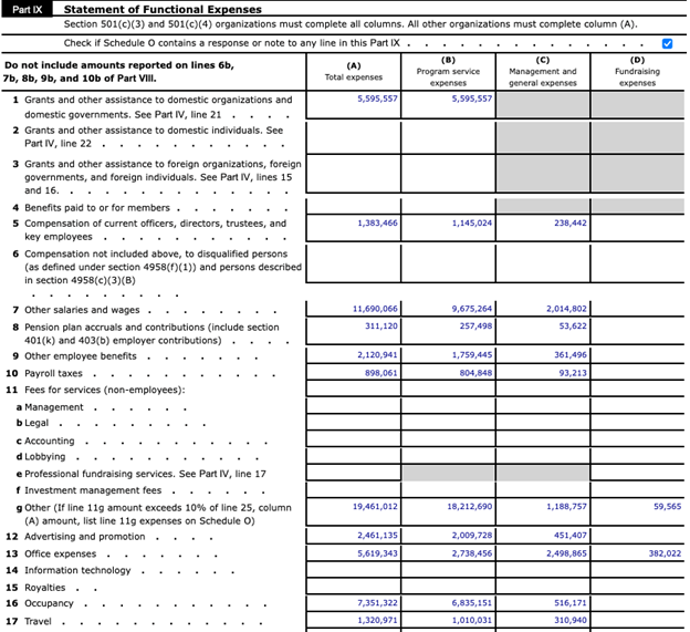 To evaluate the effectiveness of a non-profit organization, donors should closely examine Program Services Expenses which are determined by subtracting management expenses and fundraising expenses from total expenses.