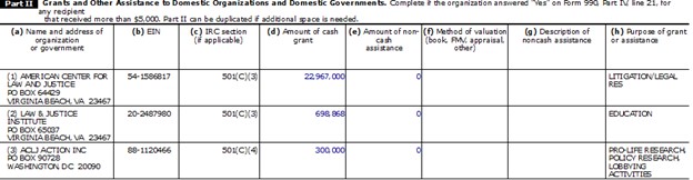 Then, CASE gave a cash grant of almost $23 million to the ACLJ, as shown in the screenshot below.