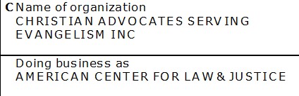 Adding to the confusion, CASE uses the trade name/DBA “American Center for Law & Justice” and conducts fundraising with the trade name. Trinity Foundation describes this practice as the Same Name Game.