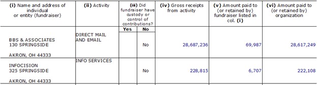 In 2022, CASE generated $28.6 million in revenue from direct mail and email fundraising which was disclosed in Schedule G of the 2022 Form 990.