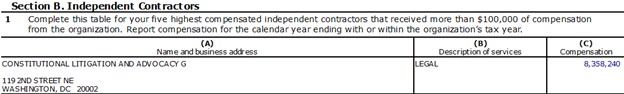 However, it is unknown how much Jay Sekulow is paid for performing legal work on ACLJ’s behalf, because this information is never included in the 990s.