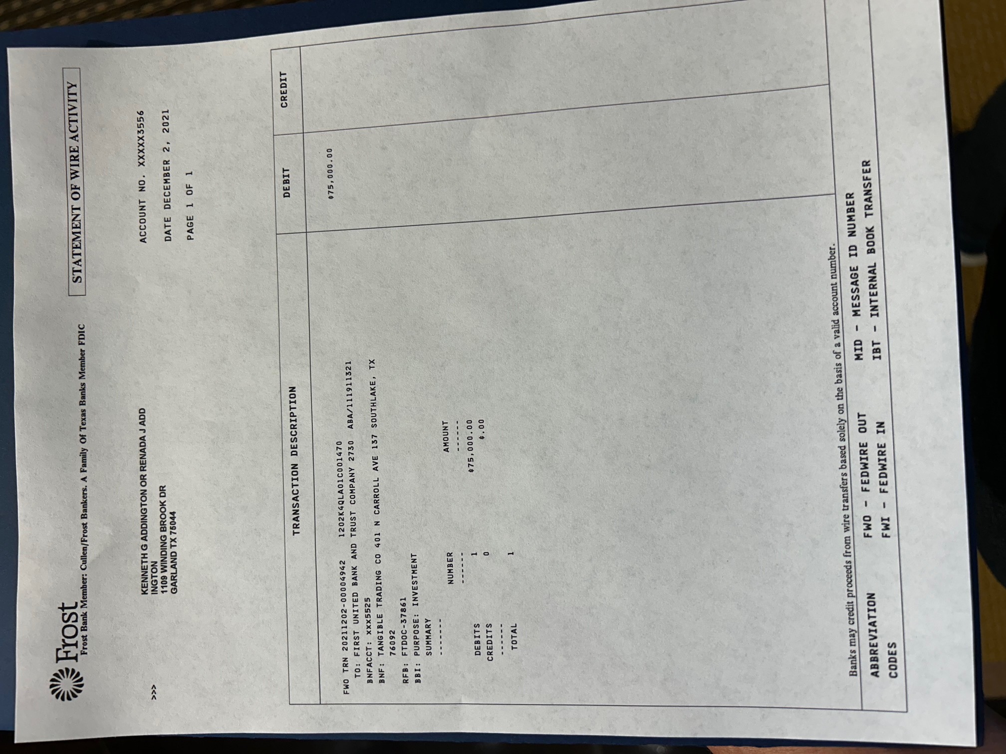 To date, the March 2024 cashier’s check is the only money Addington has ever received towards his $175K loan/investment.