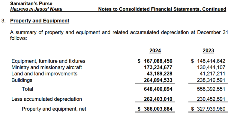 According to its 2024 consolidated financial statement, Samaritan’s Purse owned $173 million of ministry and missionary aircraft.