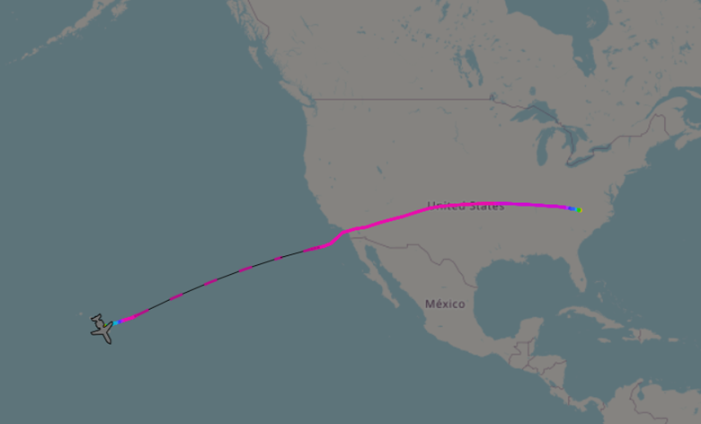 (Screenshot: ADSB Exchange shows the January 15th flight from North Wilkesboro, NC to Kailua-Kona, Hawaii.)