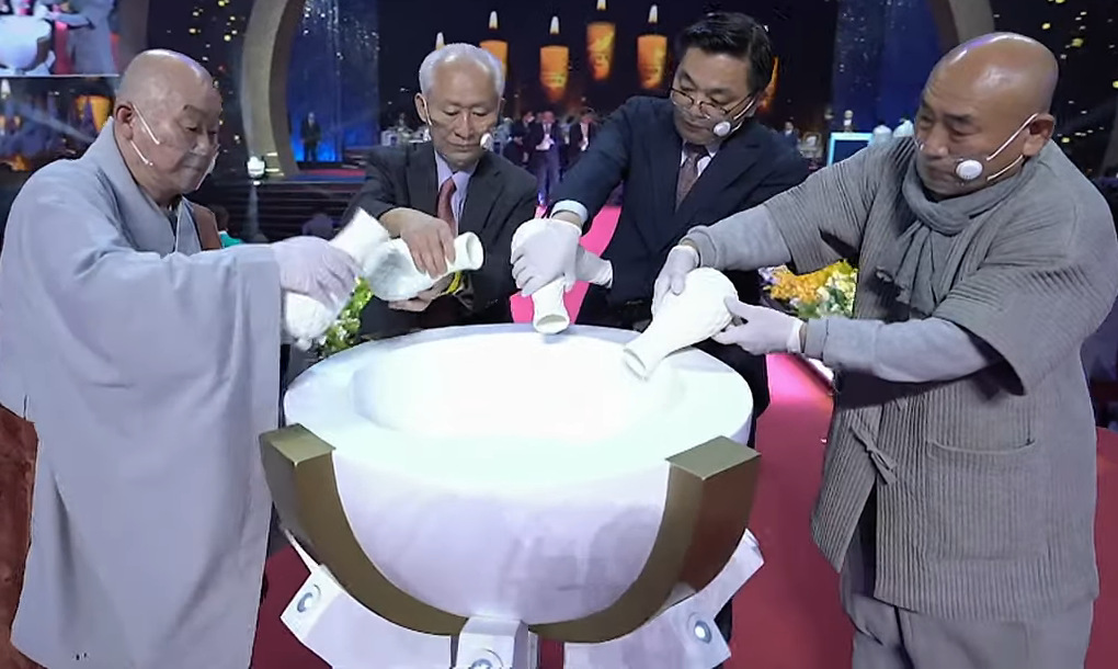 Before White spoke, a water ceremony for peace was held. The Unification Church has been observing this ritual since 1985.