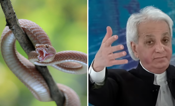 Snake image from Pixabay, screen shot of Benny Hinn on Daystar, Joni Table Talk