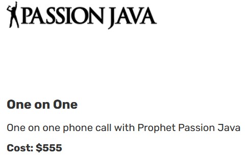 According to the prophet’s website, there is a long wait to receive a call from Passion Java: “Please be advised that after registering – one on ones are based on Prophet’s schedule. The average waiting time is 5-6 weeks but can fluctuate… Thank you for waiting in a timely manner as we are experiencing high volumes of registers.”