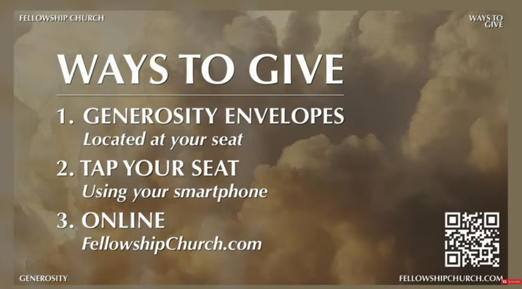 On November 30th attendees of Pastor Ed Young’s Fellowship Church in Grapevine, Texas, were encouraged to financially support the church through three different methods: Check or cash in an envelope, smartphone payment or website donation.