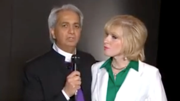 (Photo: Benny and Suzanne Hinn appearing together on TV following their 2013 remarriage.)